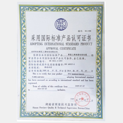 采用國際標(biāo)準(zhǔn)產(chǎn)品認(rèn)可證書